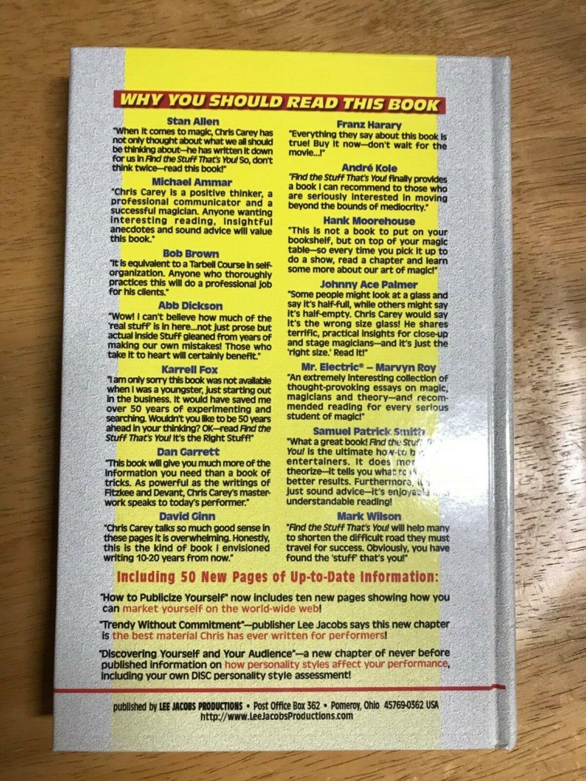 Find The Stuff That’s You by Chris Carey is a creative and practical guide that helps magicians discover their authentic performance voice. Instead of focusing solely on tricks, Carey encourages performers to develop individuality, originality, and presentation—transforming standard effects into personal, memorable magic.