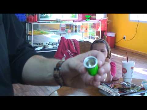 The I Want My Pea trick uses a small brass can and a handful of peas to build up